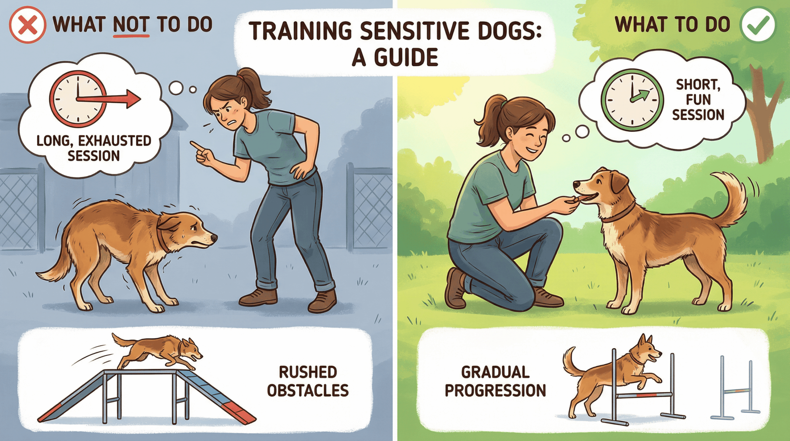 持続可能な進歩を遂げるためには、過去の過ちを繰り返さないことが重要です。以下は、繊細な⽝の⾃信を損ないがちな、よくある間違いです。