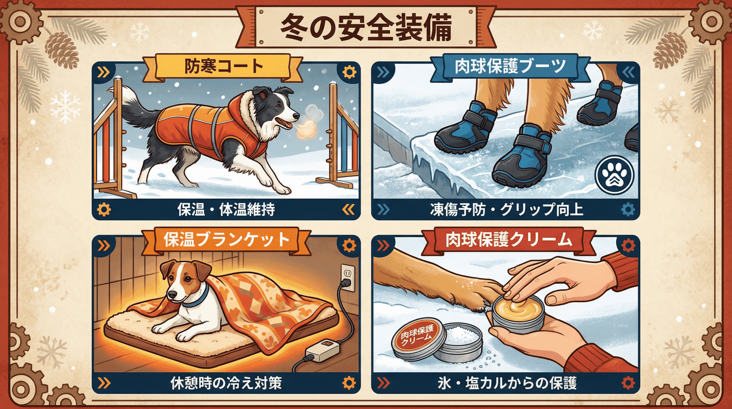 アジリティ犬の防寒装備ガイド|ウェアと肉球ケアの選び方