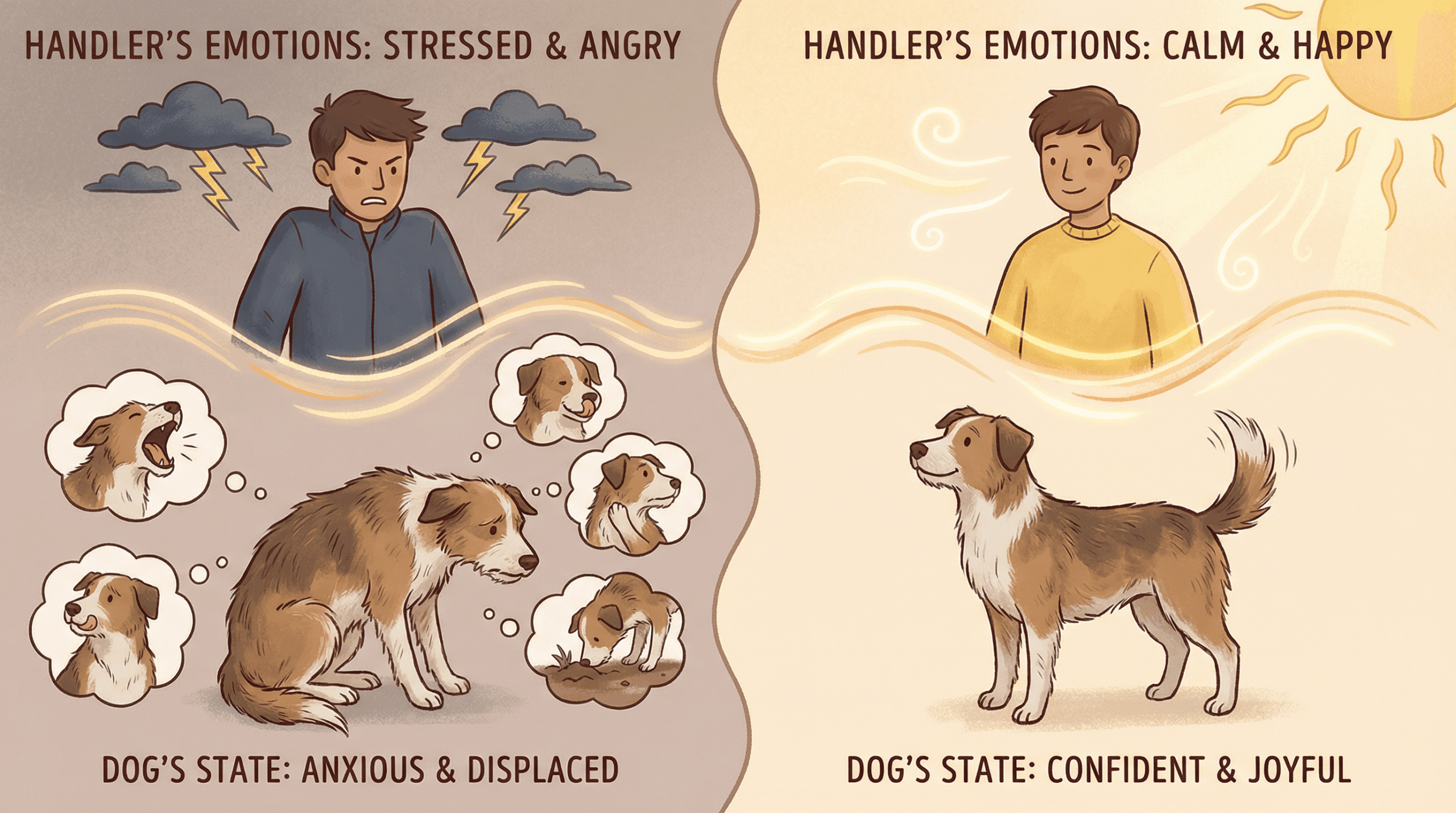 これらの⼩さなサインを⾒逃し、「集中しろ!」とさらにプレッシャーをかけることは、⽕に油を注ぐようなものだ。ハンドラーは、これらの「声なき声」に気づき、「ごめん、少しプレッシャーが強すぎたね」と、状況を緩和する責任がある。