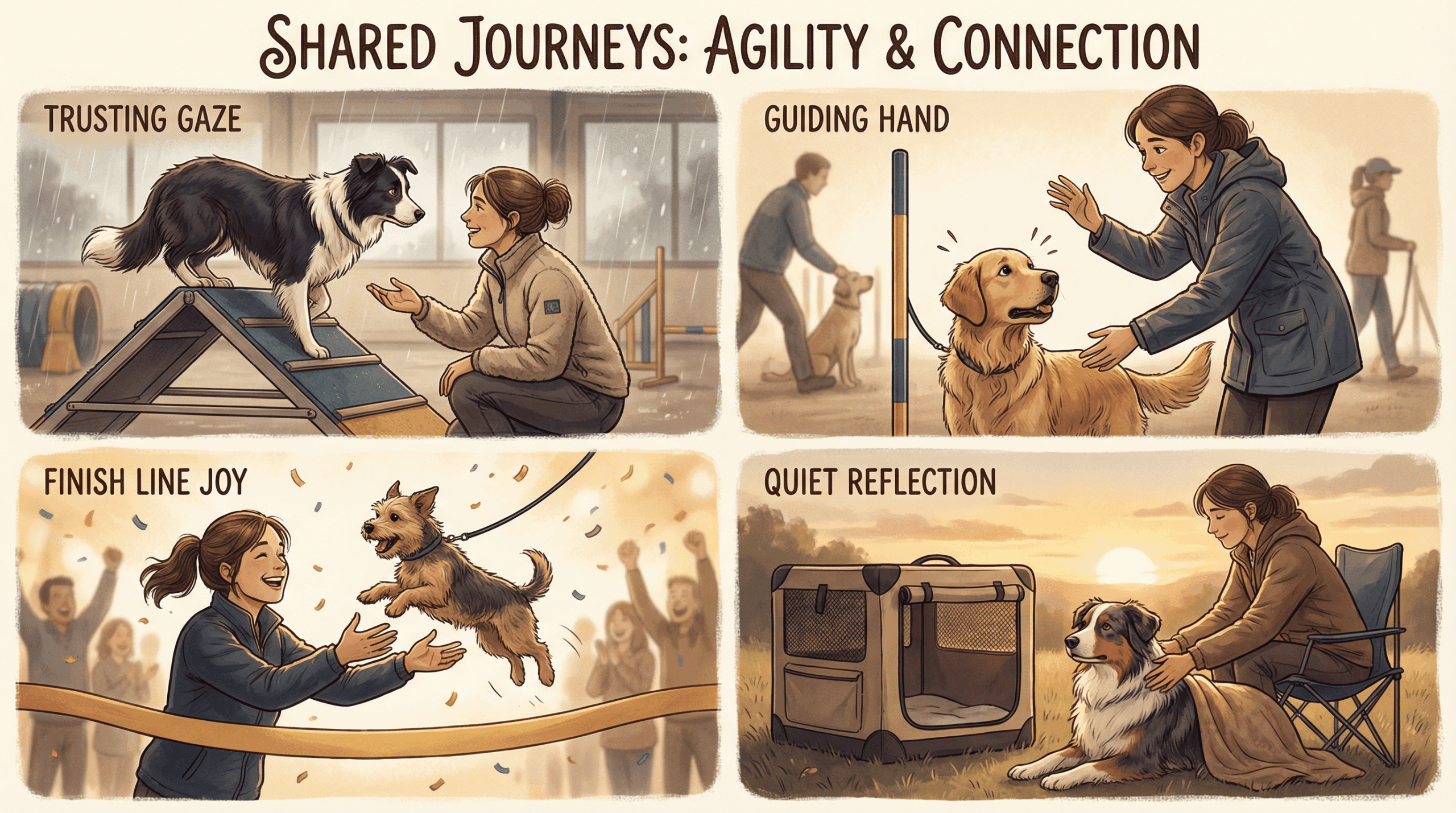 •共に乗り越えた瞬間: あなたのミスで、コースを間違えてしまった時。あなたがパニックにならず、「⼤丈夫、こっちだよ」と優しく声をかけ、⽝を正しいルートに導き、最後まで⾛り切ることができた、あの瞬間。それは、クリーンランよりも、遥かに価値のある「チームワークの勝利」ではなかったか。
