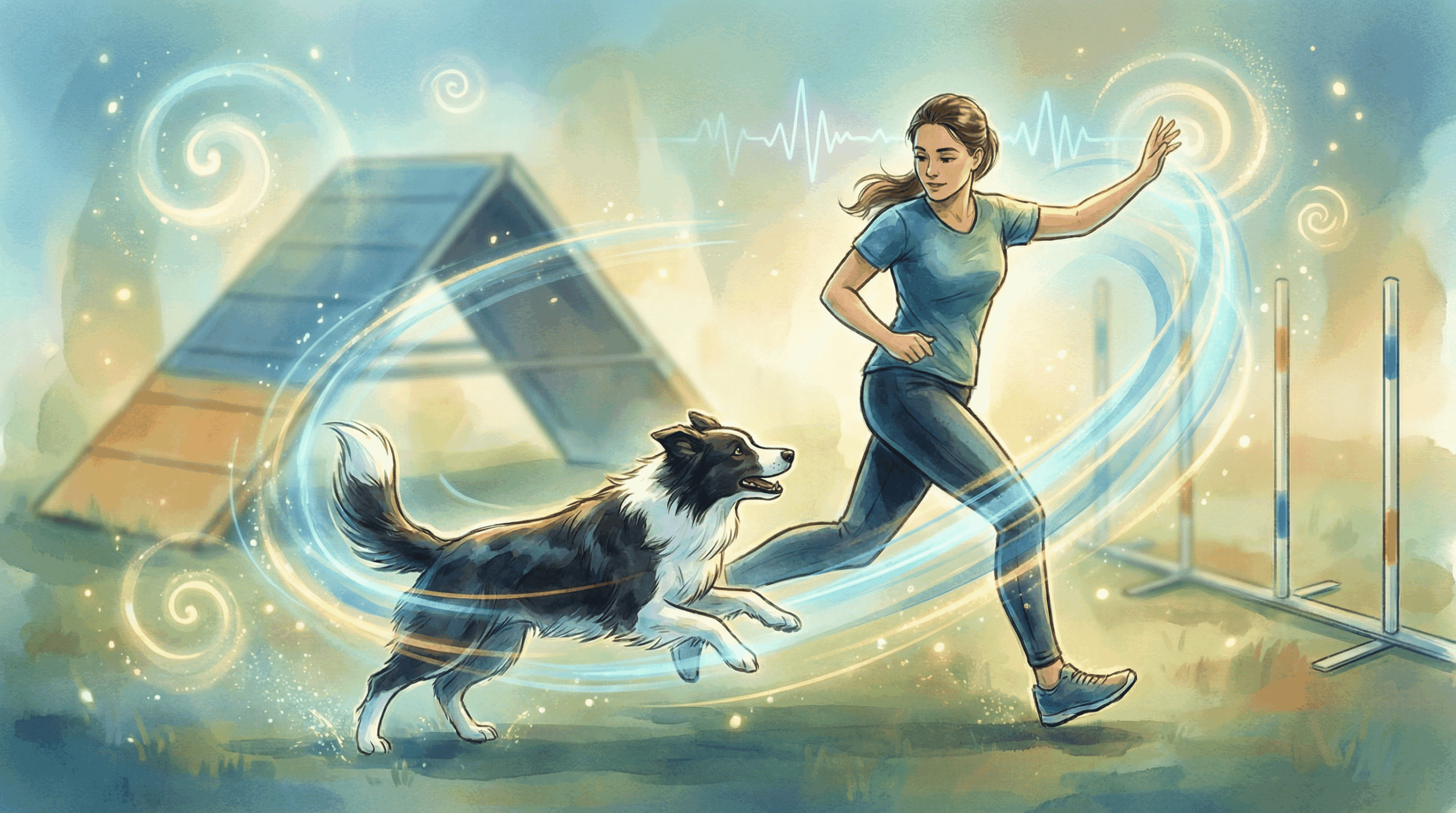 ドッグアジリティにおける究極の報酬とは、まさに、この「フロー状態」を、愛⽝と共有することにある。ハンドラーの思考が、そのまま⽝の動きとなり、⽝の⾛りが、ハンドラーの次の思考を導く。⾔葉も、派⼿なジェスチャーもいらない。まるでテレパシーで繋がっているかのように、⼆つの個体が、⼀つの完璧な流れとなって、コース上を舞う。