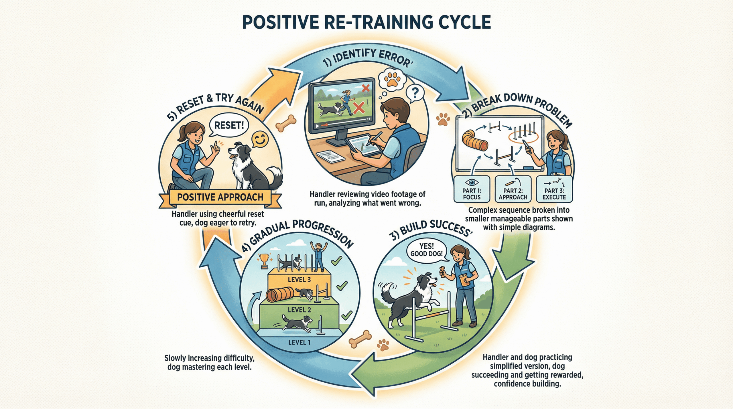 最も重要な第一歩は、ミスを「良い/悪い」で判断するのをやめ、客観的な「情報」として捉えることです。バーが落ちたのはなぜか?犬がコースを間違えたのは、自分のキューが不明確だったからではないか?拒絶したのは、障害物への自信がまだ育っていないからではないか?すべてのミスは、あなたと犬の現在のスキルセットやコミュニケーションにおける「改善点」を教えてくれる、貴重なデータなのです。