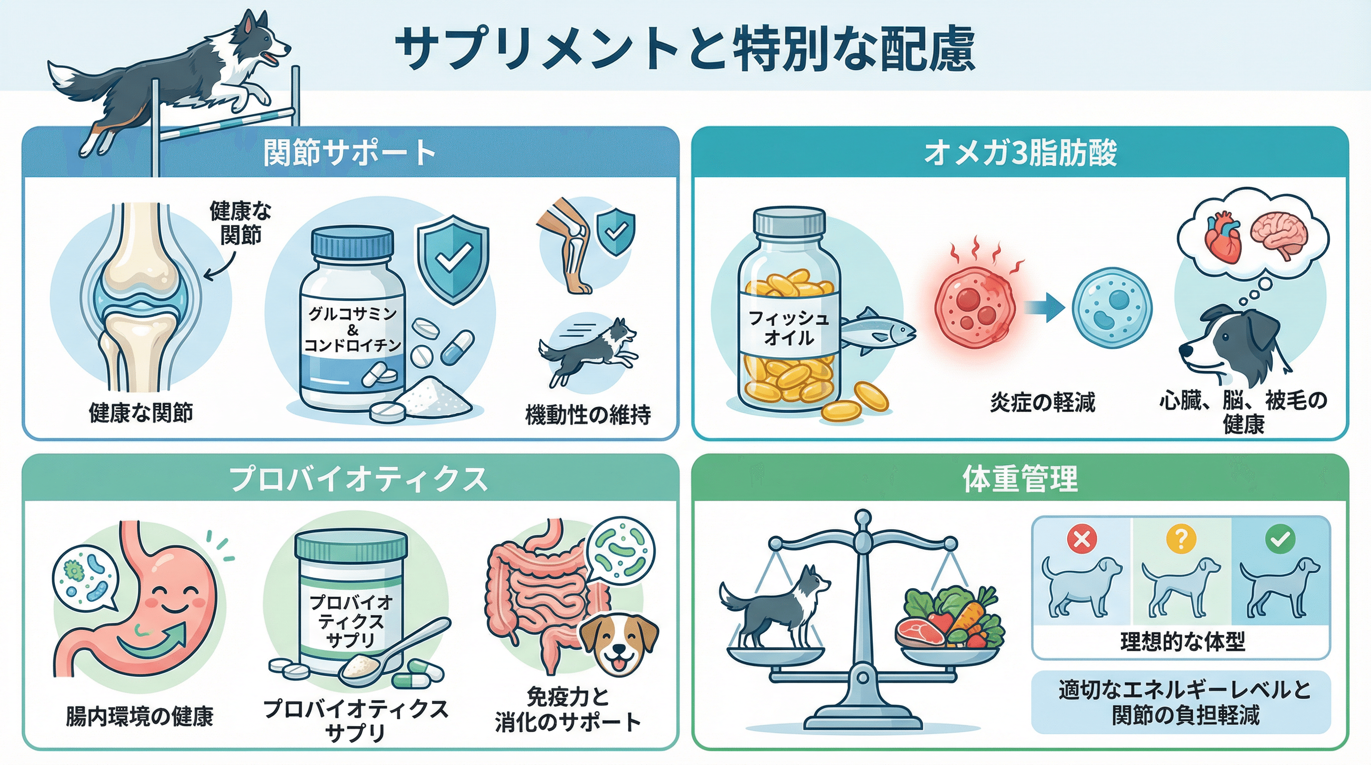 アジリティドッグにおすすめのサプリメントと注意点