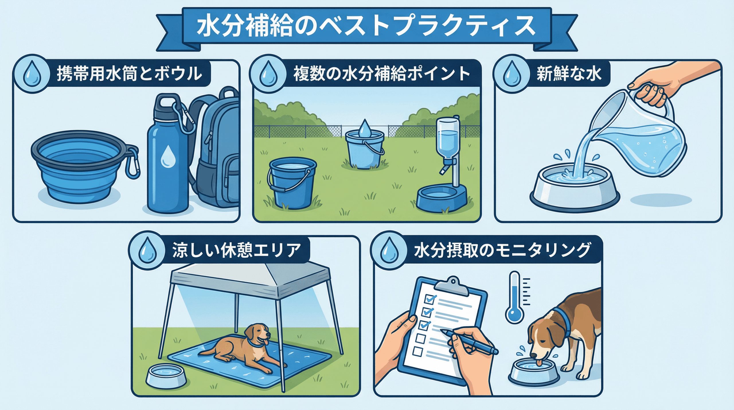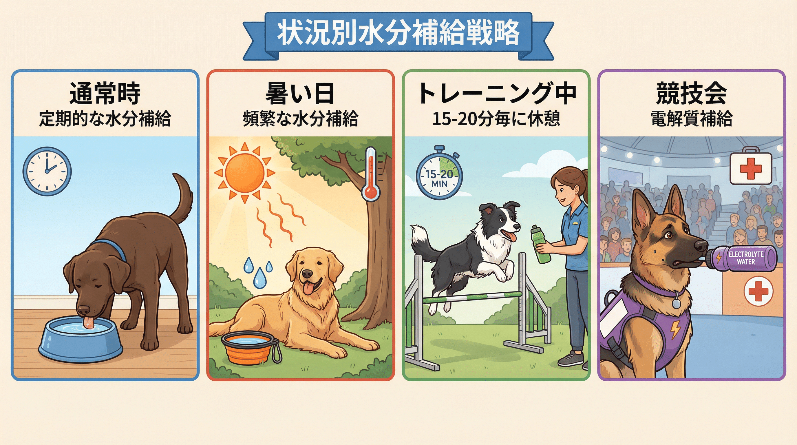 競技会・練習・夏場別|アジリティ犬の水分補給戦略