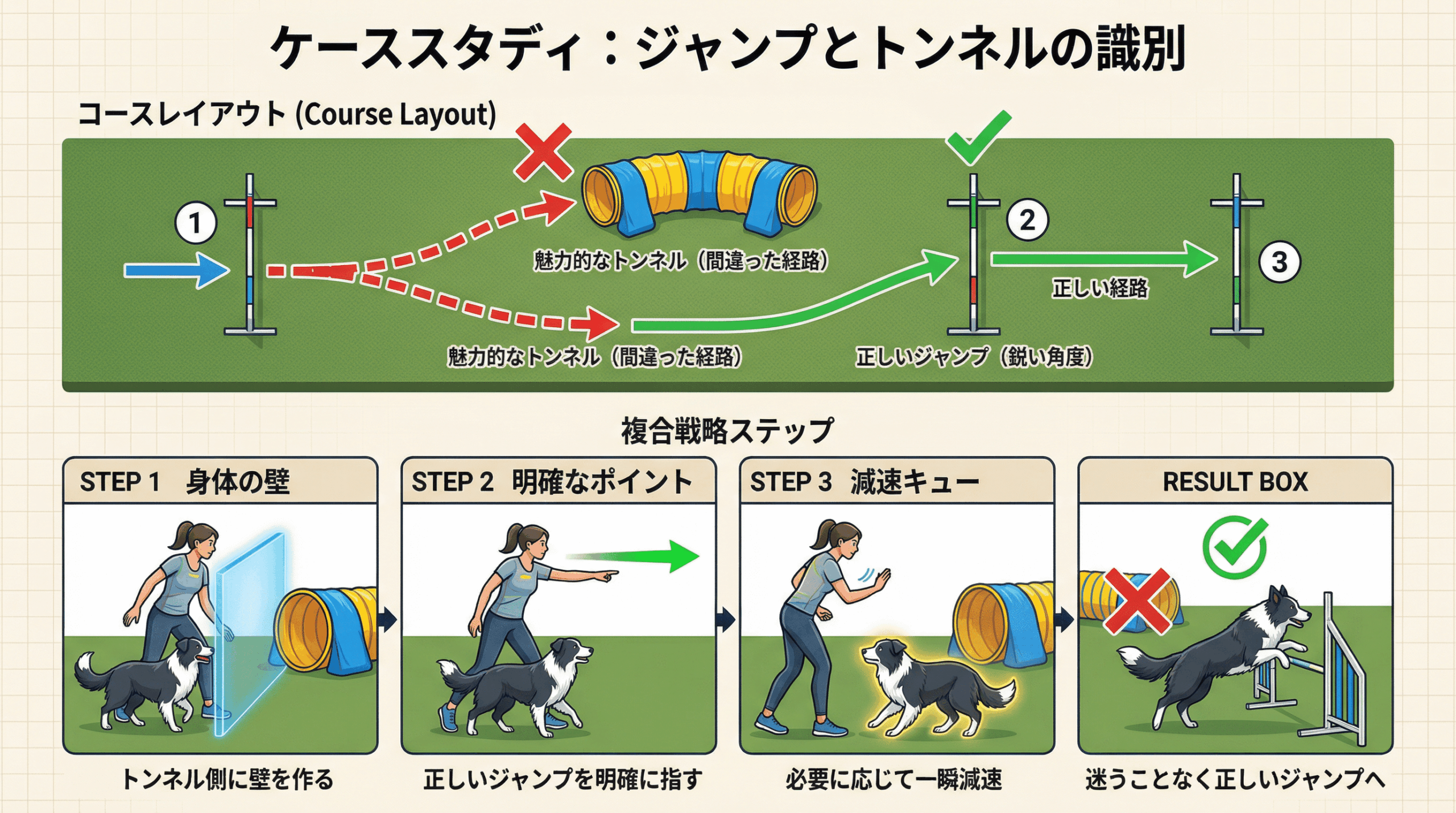 これらの情報が正確に伝わることで、犬は迷うことなく、トンネルの誘惑を断ち切り、正しいジャンプへと向かうことができます。