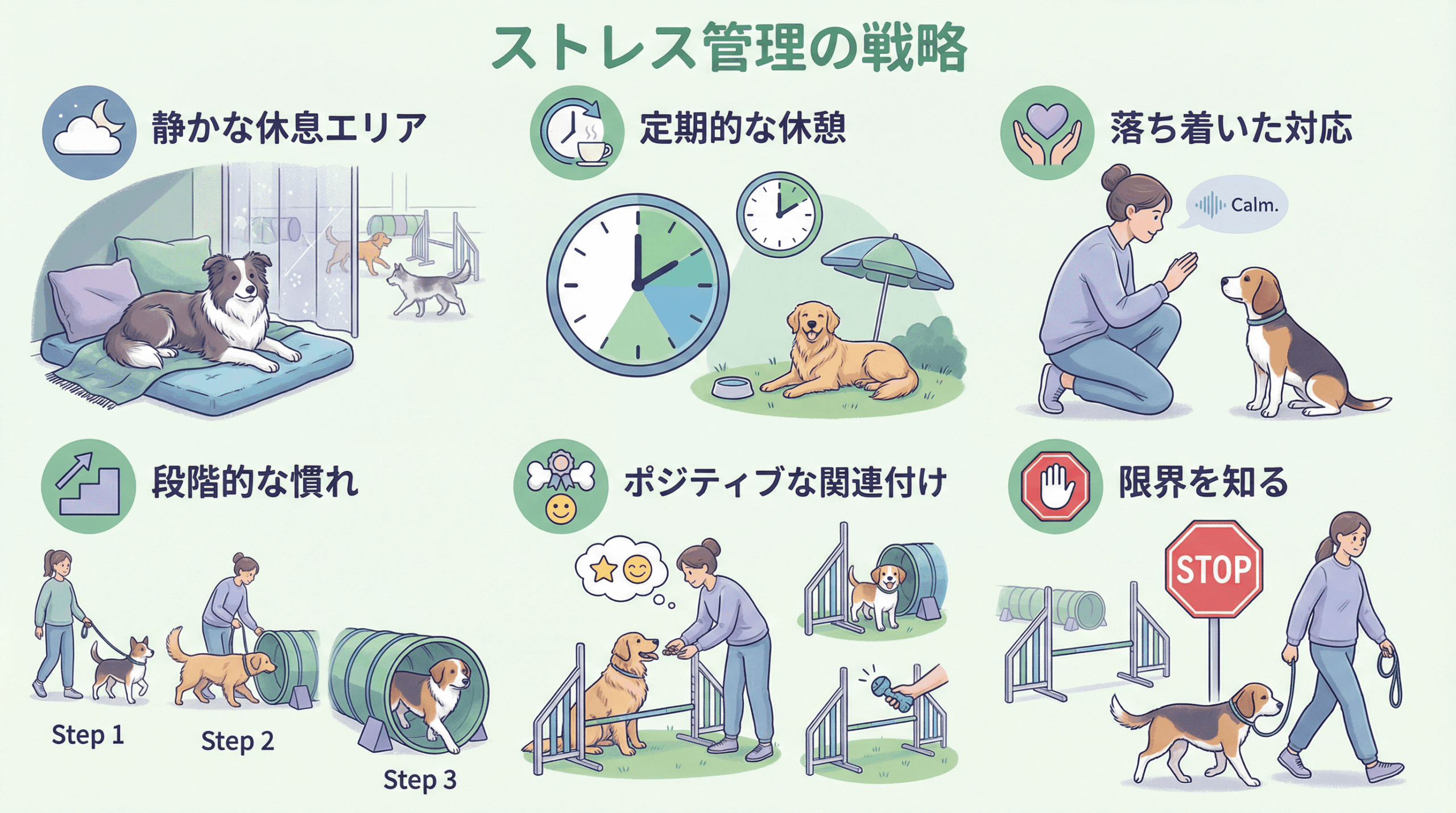 ストレス管理の目標は、ストレスを完全になくすことではなく、犬が対処できる範囲にコントロールし、安心感と自信を育むことです。