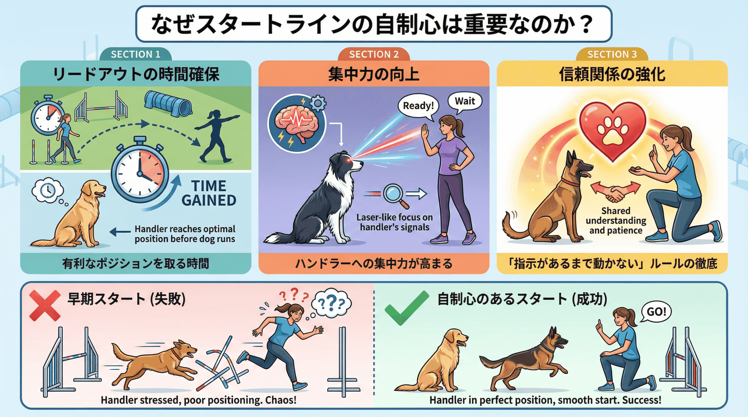 まとめ:スタートラインの自制心はハンドラーとの信頼関係の証