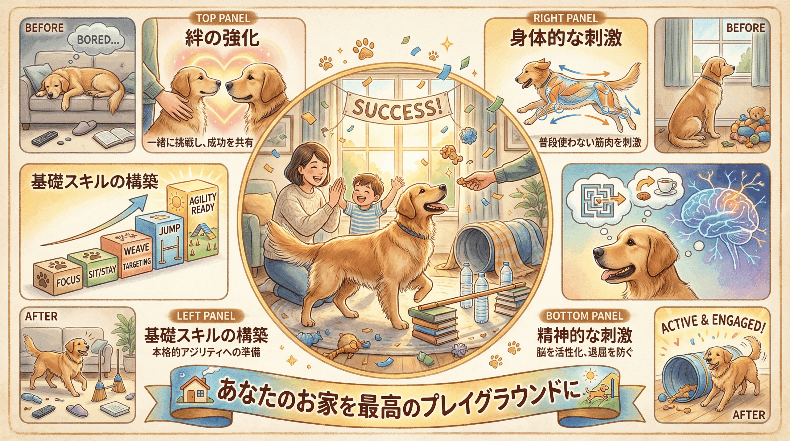 •絆の強化: 一緒に新しいことに挑戦し、成功体験を共有することで、愛犬との信頼関係が深まります。